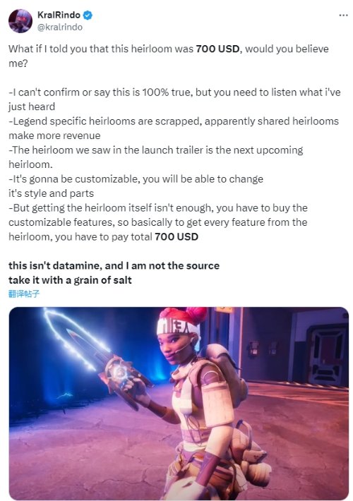 而《Apex英雄》的數(shù)據(jù)挖掘博主KralRindo在推特上表示,之后可能沒(méi)有傳奇專(zhuān)屬傳 家 寶了。