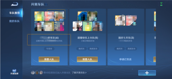 最近一起開黑組隊的隊友所在車隊將出現(xiàn)在車隊推薦界面,玩家可點(diǎn)擊申請入隊