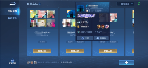 新增開黑車隊系統(tǒng)內(nèi)點(diǎn)頭像可查看玩家名片功能