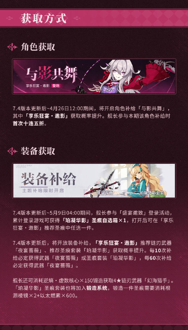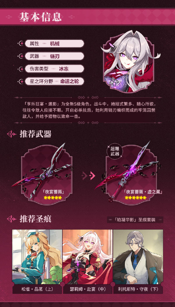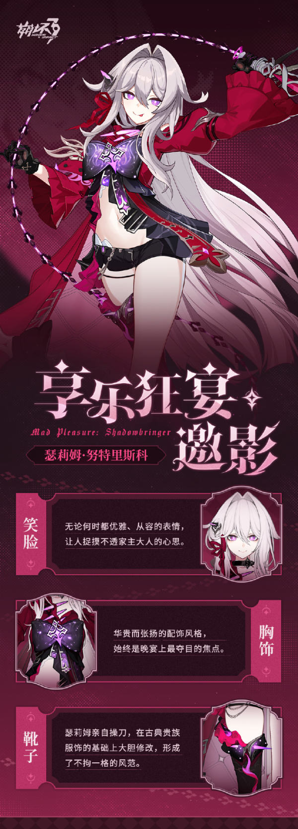 仆從,敵手,甚至恐懼本身。少女將所見一一支配,然后,重新教會世人,何為享樂。「開宴之時已到?,F(xiàn)在,只準(zhǔn)你們舉杯——稱頌吾名!」 艦長好,全新S級角色「享樂狂宴·邀影」登場。現(xiàn)為艦長帶來最新情報,一起來看看吧~