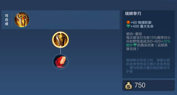 新增被動-重創(chuàng):每次普攻行為有15%基礎概率(普攻1秒后概率逐步提升,至多在3秒后提升至60%,進行普攻后提升效果消失)對小兵和野怪造成200~400+25%額外生命的物理傷害(遠程英雄減半)