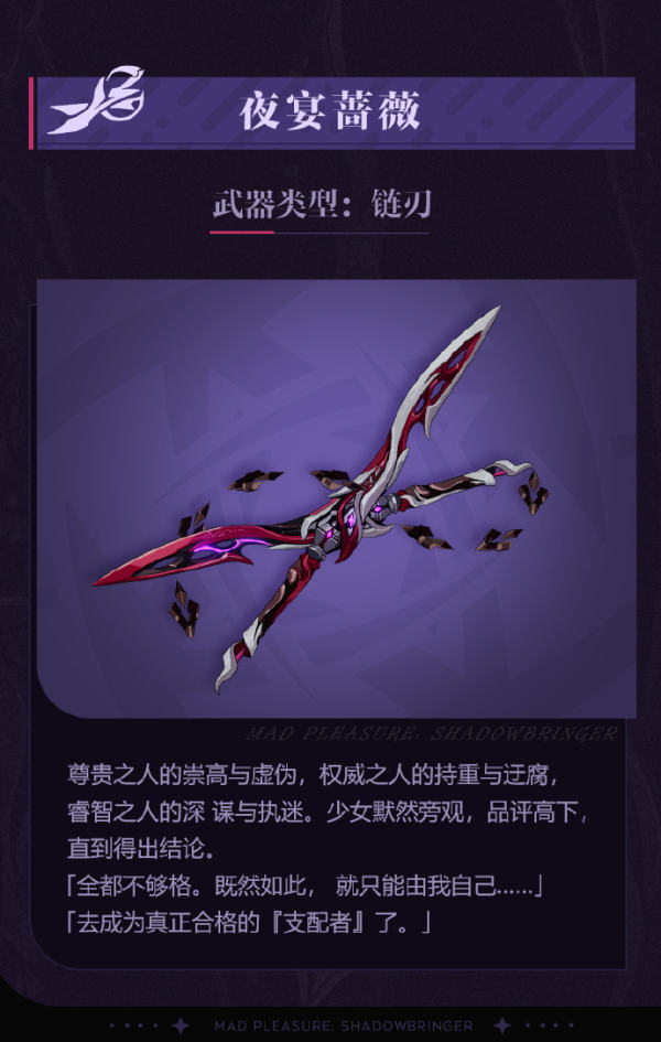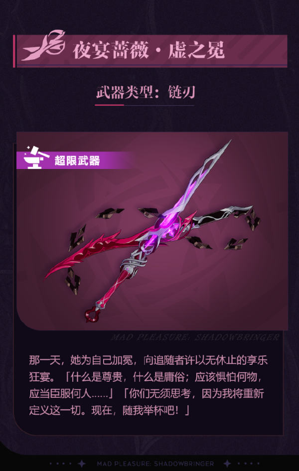 另一方面,「夜宴薔薇」作為未超限版本的武器,雖然也具有一定的增傷效果,但在整體性能和機(jī)制上可能稍遜于「夜宴薔薇·虛之冕」。因此,對(duì)于追求更高戰(zhàn)斗效果的玩家來(lái)說(shuō),「夜宴薔薇·虛之冕」無(wú)疑是更好的選擇。