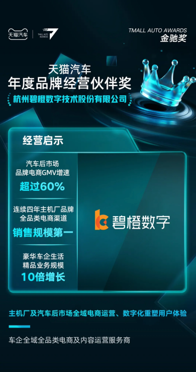 - 碧橙數(shù)字榮獲天貓金馳獎(jiǎng)多項(xiàng)殊榮,助力車企開啟增長(zhǎng)新篇章
